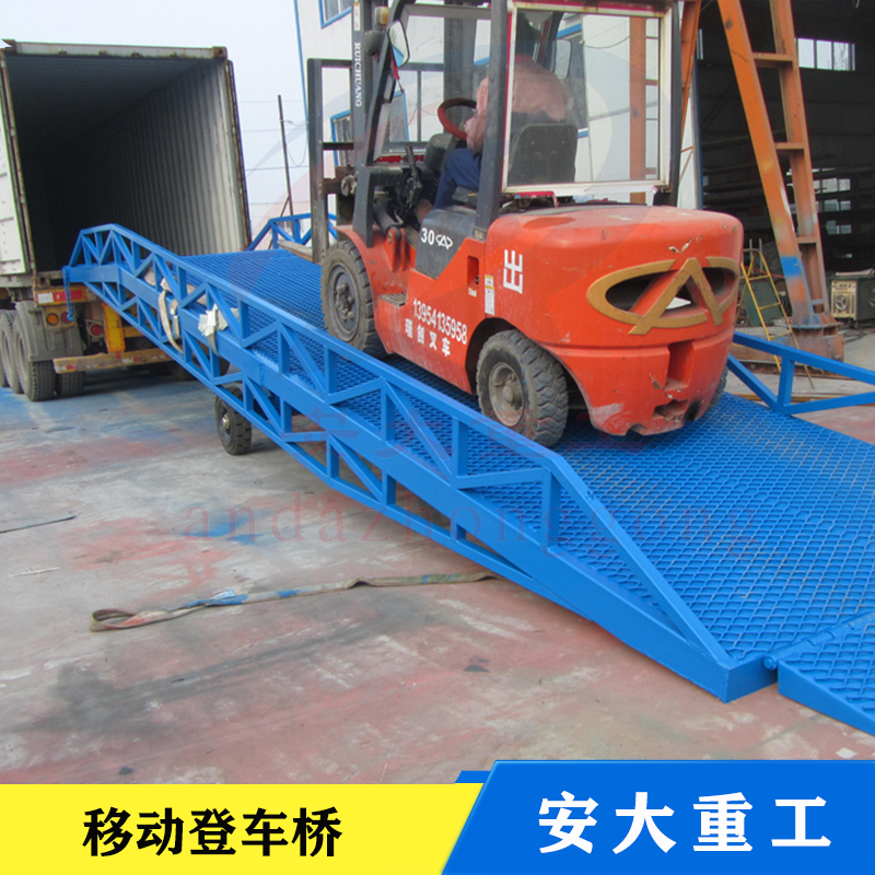 移動(dòng)式登車(chē)橋是與叉車(chē)配合使用的貨物裝卸輔助沒(méi)備,可根據(jù)汽車(chē)車(chē)用的高低調(diào)節(jié)高度,叉車(chē)可以直接通過(guò)本設(shè)備駛?cè)胲?chē)廂內(nèi)部進(jìn)行貨物的批量裝卸,需單人作業(yè),即可實(shí)現(xiàn)貨物的快速裝卸。它使企業(yè)減少大量勞動(dòng)力,提高工作效率,獲取經(jīng)濟(jì)效益。